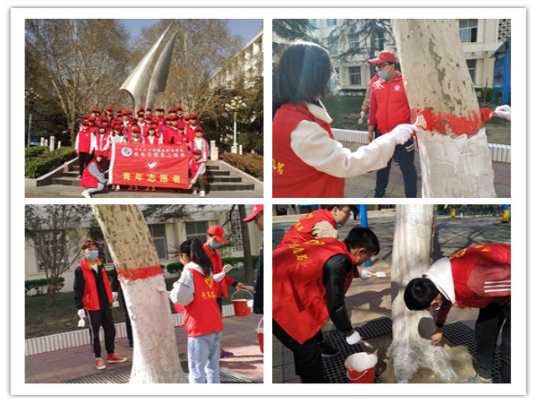 活动中,志愿者们不怕苦、不怕累,精神十足,给树木涂白防虫害,将服务大众与爱树护树相结合,丰富了课余生活,美化了校园环境。