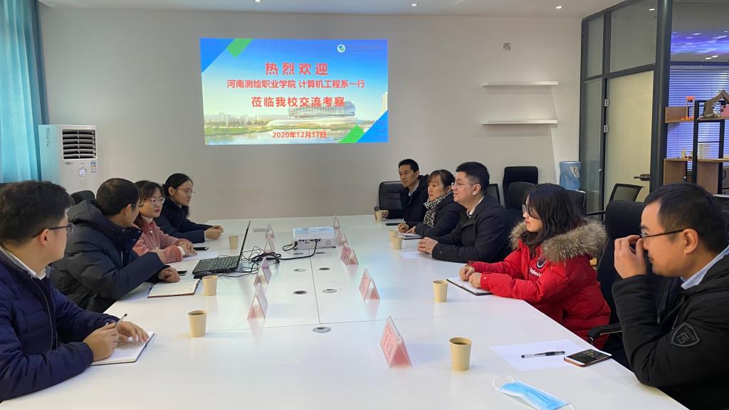 12月18日上午,河南测绘职业学院计算机工程系王翰钊主任一行五人来我校交流,考察信息工程系专业建设和实训室建设情况。信息工程系主任张军锋、副主任王文凡及相关教师参加交流活动。