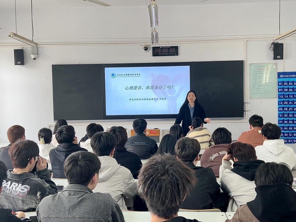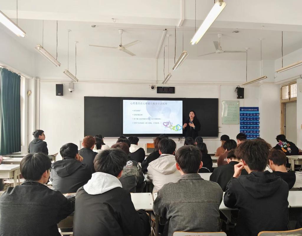 会上,王老师向同学们介绍了心理委员的职责、工作内容,并向大家普及了心理健康基础知识,引导心理委员掌握倾听、共情等心理咨询技巧,提升心理委员的专业能力,带动同学们积极参与心理健康活动,更好地担任辅导员的好助手。