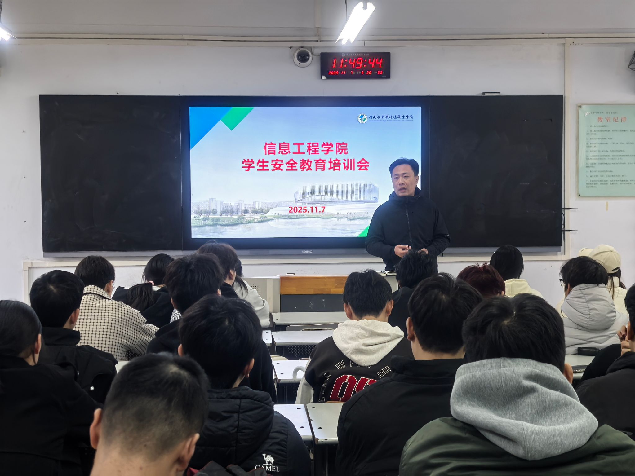 在学生安全教育培训会上,学院党总支书记周颖琦着重强调四个关键要点:一是学生安全,涵盖人身、财产等多方面,提醒学生时刻保持警惕;二是保障学业,鼓励学生合理安排时间,积极进取;三是交通安全,强调遵守交通规则,确保出行平安;四是兼职报备,要求学生兼职时向家长和学校报备,保障自身权益。
