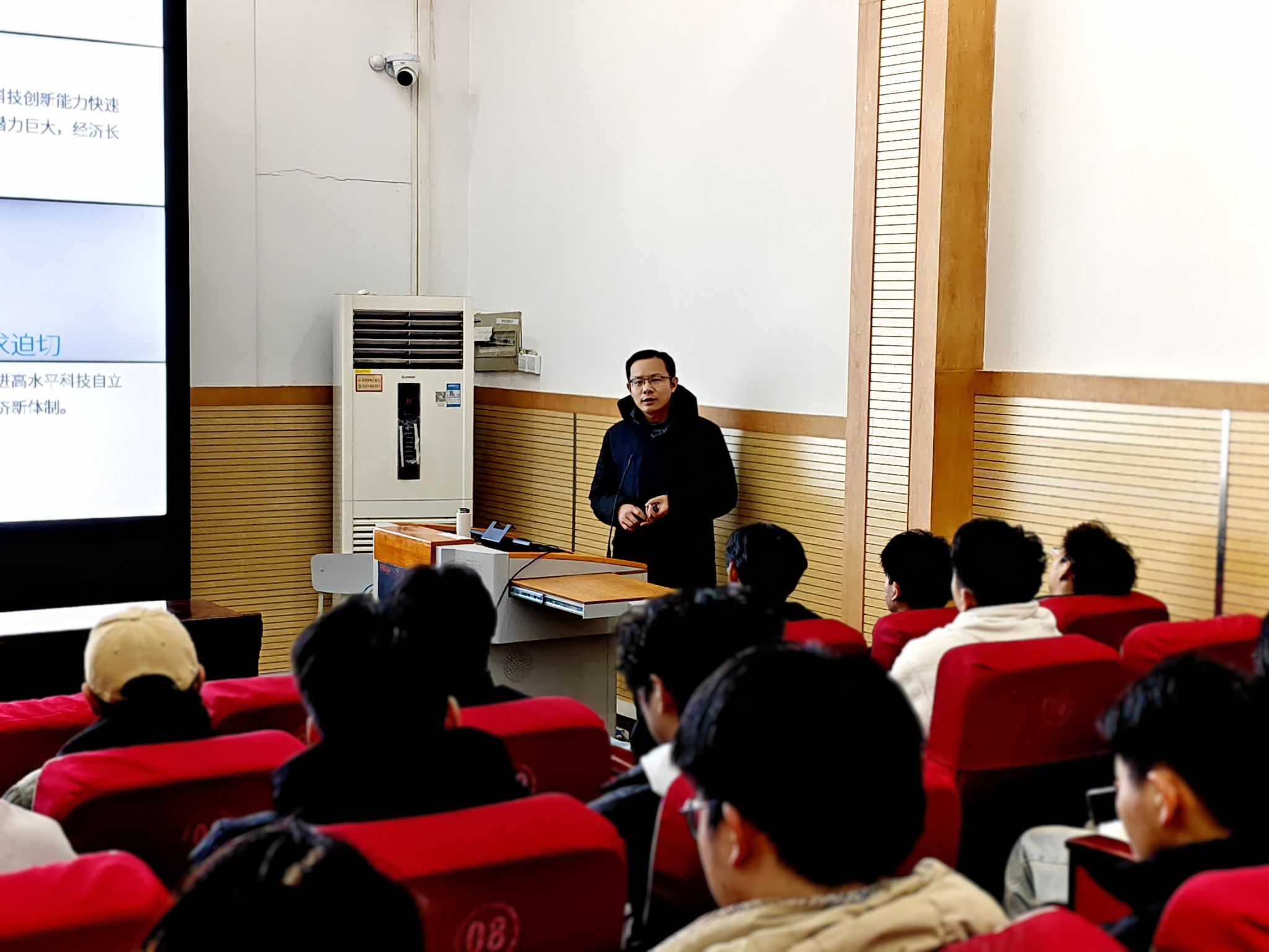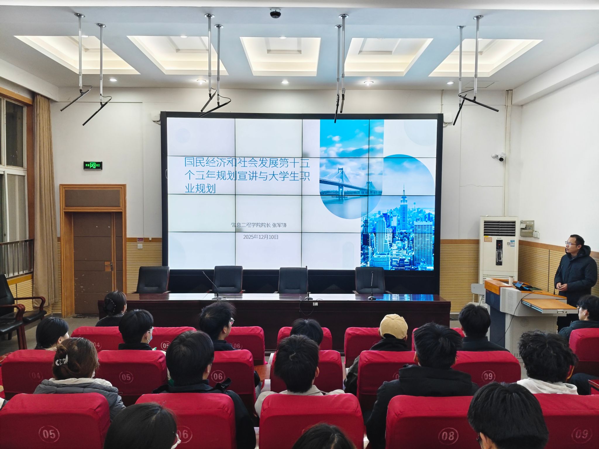 12月10日,海角hjb4b5,top院长张军锋以“国民经济和社会发展第十五个五年规划与大学生职业规划”为主题,为全体学生干部讲授了一堂内容丰富、意义深远的思政课,引导学生将个人发展融入国家战略大局。