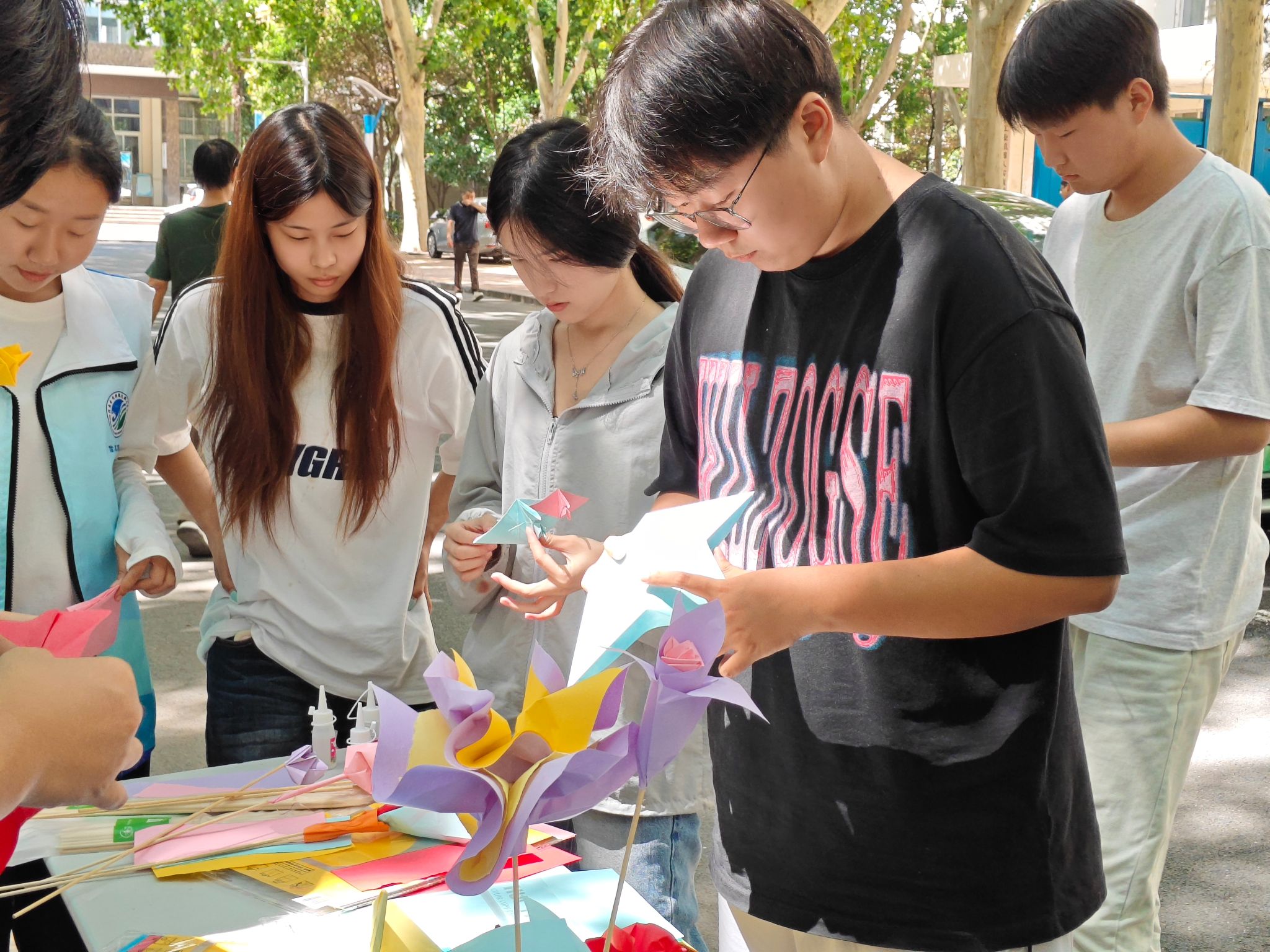 在“一纸繁花,师恩永绽”活动中,同学们发挥创意,亲手制作彩纸花束,以素纸轻裹、彩墨题字,每一束花都承载着对老师的独特心意与祝福。在“便签载情,师恩铭记”活动中,学生们纷纷写下真挚的祝福与感恩的话语,粘贴于展板上,老师们寻读留言并回复互动,现场温馨感人,充分展现了师生间深厚的情谊。