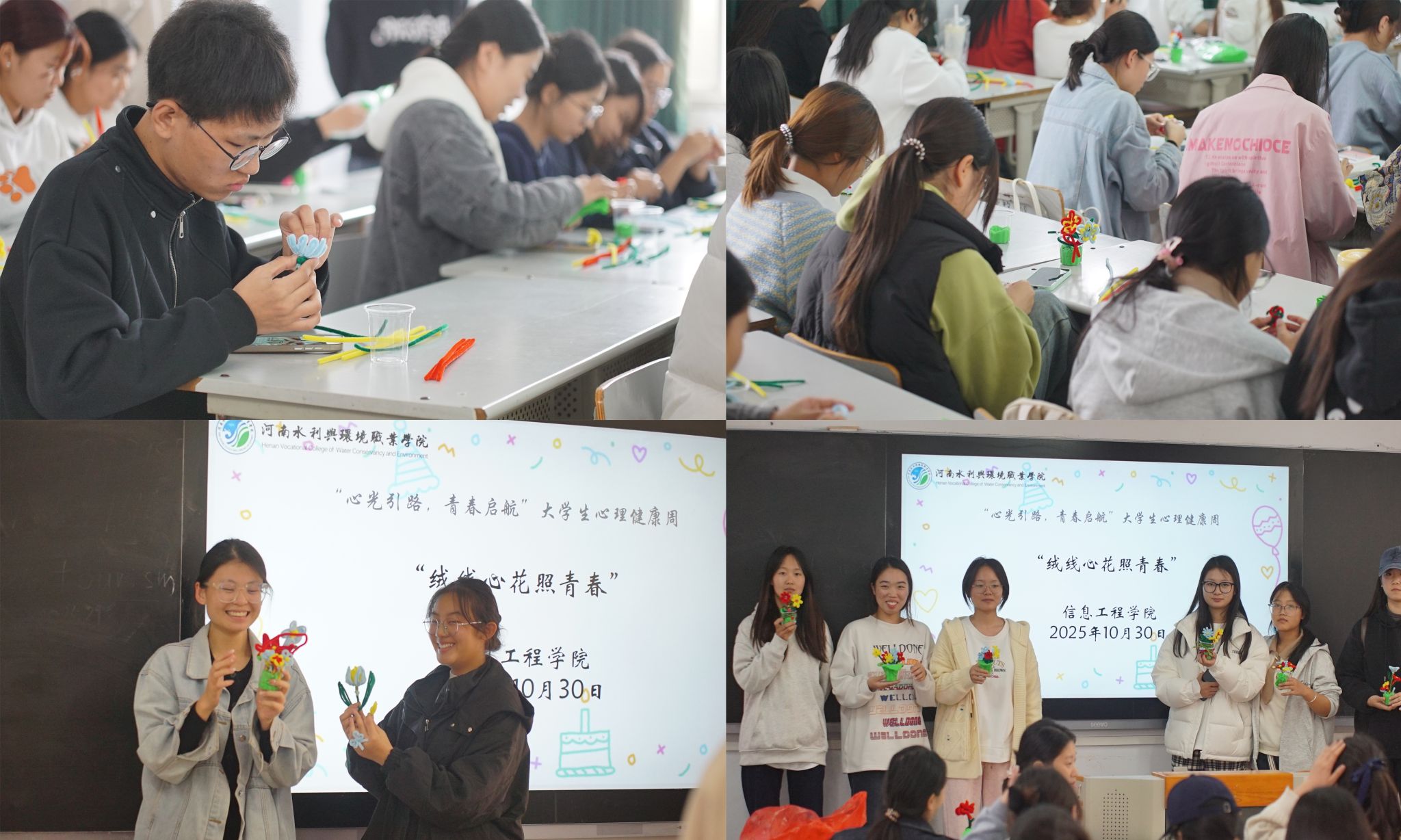 在“绒线心花照青春”手工活动上,学生用扭扭棒创作“星光花束”,在动手实践中放松身心、释放压力,感受内心平静与力量。