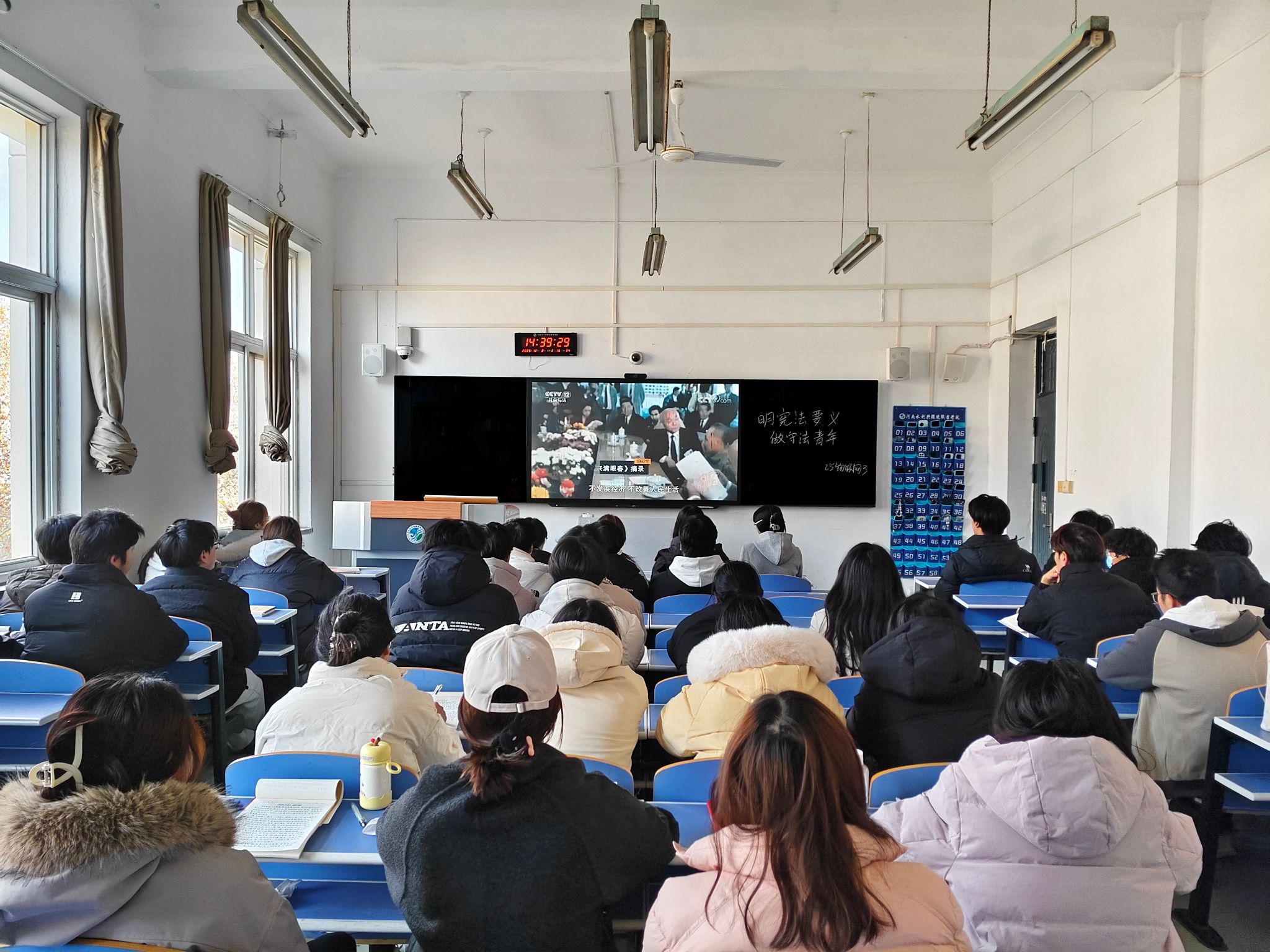 在“明宪法要义,做守法青年”学宪法主题团课上,学院组织同学们观看CCTV纪录片《建设法治强国 让法治的阳光温润每一个国人》以及宪法日宣传视频。视频以生动的画面、鲜活的案例,展现了宪法在国家治理和社会生活中的重要地位与作用,让同学们直观感受宪法魅力。观看结束后,各班团支部书记结合视频内容,深入阐释习近平法治思想,剖析宪法核心内涵,引导同学们深刻领会宪法精神实质。